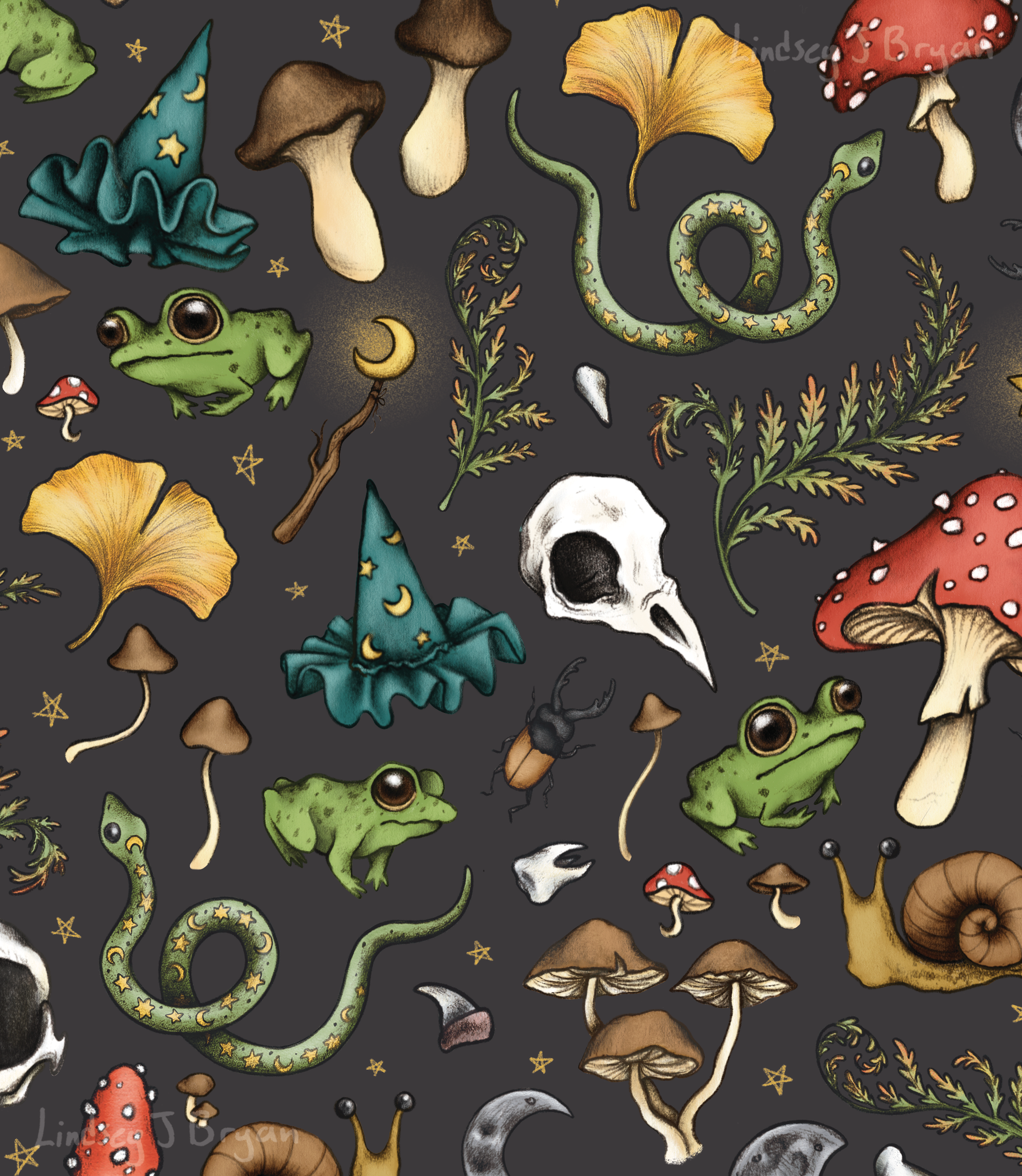 ‘Cursed Creatures Designs’ A collection of swamp witch inspired spot illustrations and patterns for Cursed Creatures. These assets were turned into bag designs of varying sizes. View fullsize View fullsize